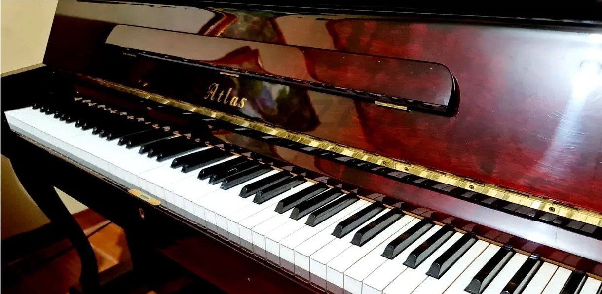 The Atlas-55 Mahogany Upright Piano is a beautifully crafted instrument known for its reliability, warm tone, and elegant cabinet design. This used upright piano in Dubai features a stunning mahogany polished finish, making it a perfect addition to homes, music studios, and educational institutions.