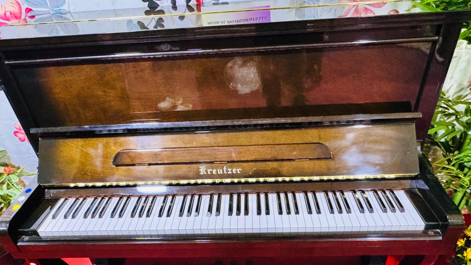 KREUTZER Mahogany Upright Piano is a beautifully crafted full-size upright piano that combines elegant European-inspired cabinet styling with the reliable tone and touch of a Japanese-built instrument. Finished in a rich polished mahogany colour, this piano is perfect for villas, luxury homes, music rooms, and studios where both sound and appearance matter.