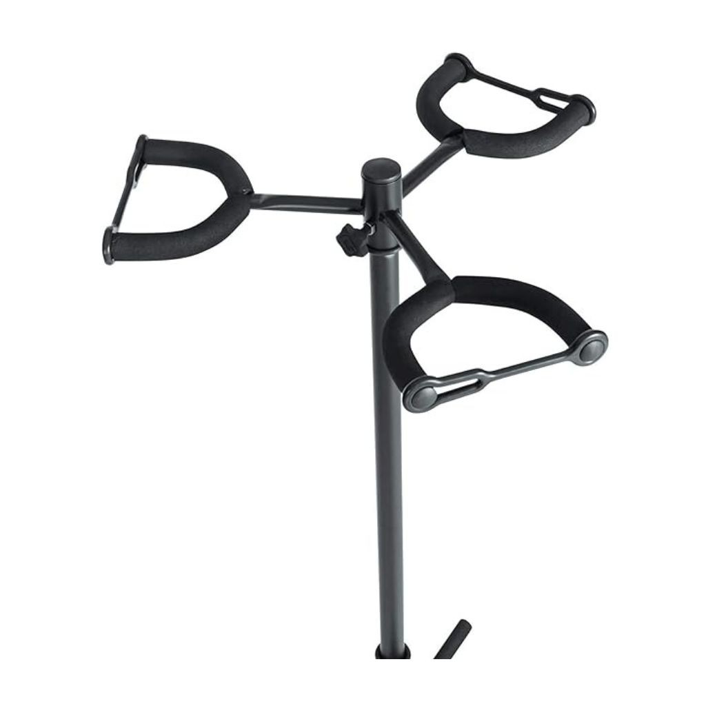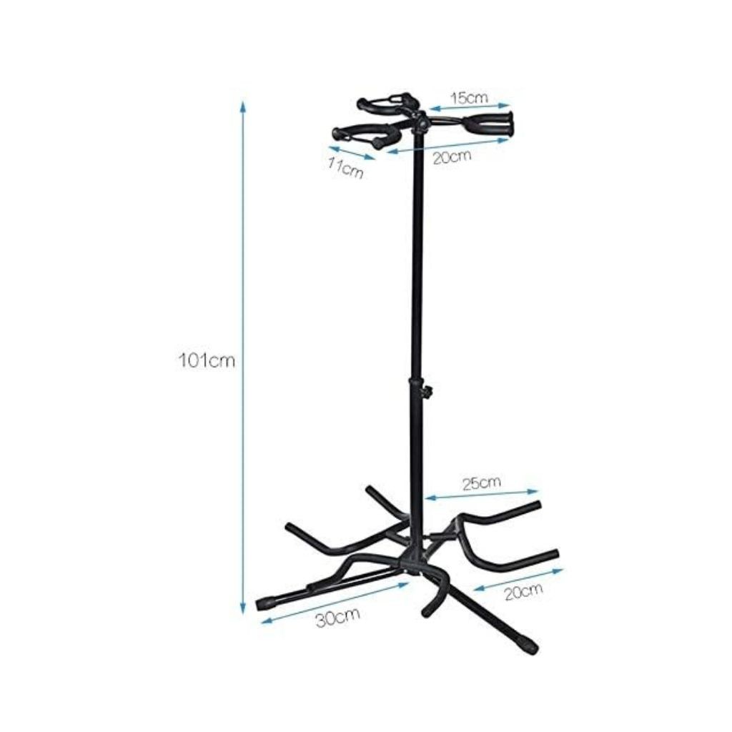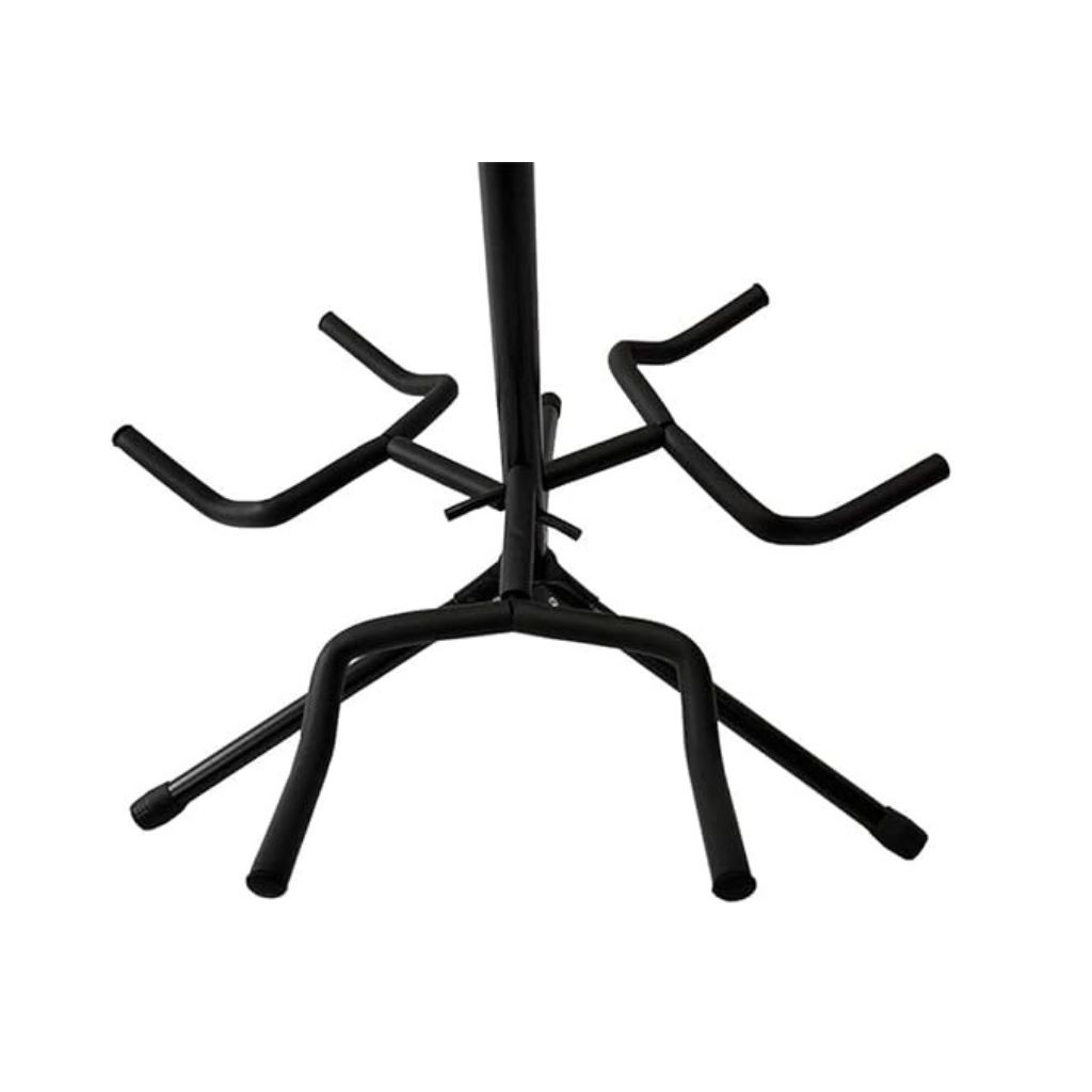 Holds 3 Guitars This high capacity multi Guitar Stand can hold up to 3 multiple guitars and guitar bag/cases all at the same time without tripping over. Perfect for On Stage or In-Studio Use.The classic guitar rack can hold up to 3 guitars, suitable for both acoustic & electric guitars, ideal for use in a practice room, studio, on stage or at home