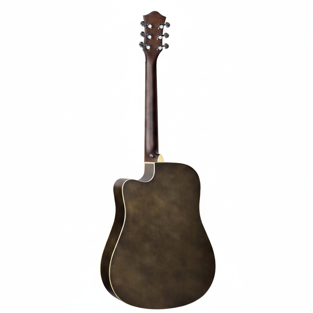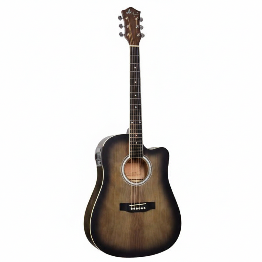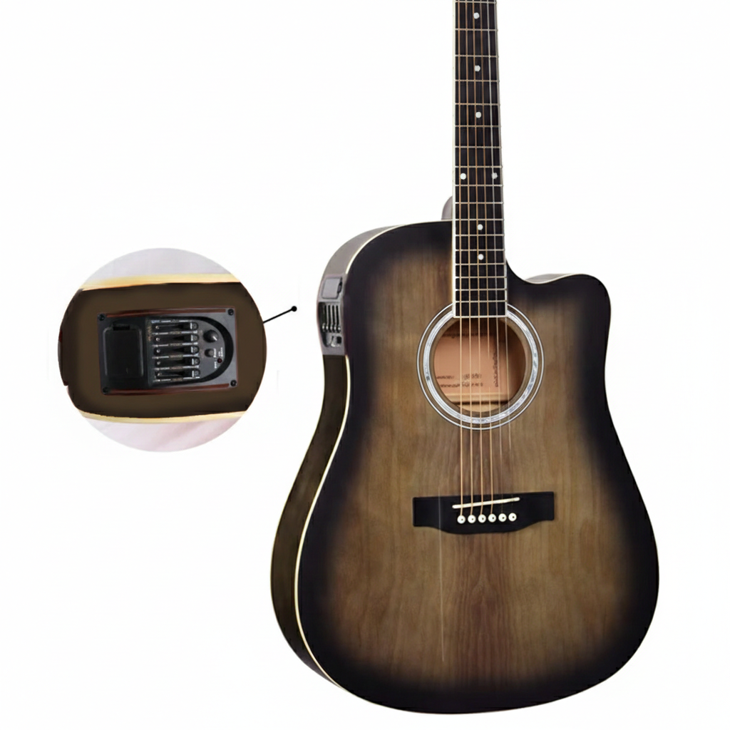 The Megarya 41" Tobacco Sunburst (TBS) Electro-Acoustic Guitar Bundle is the ultimate setup for the aspiring and professional musician alike. This full-sized dreadnought features a stunning vintage-inspired sunburst finish and a Venetian cutaway for effortless access to upper frets. What sets this model apart is the integrated Active EQ Preamp system, allowing you to plug into an amplifier or soundboard for live performances. Paired with a custom-fit, heavy-duty padded carry bag
