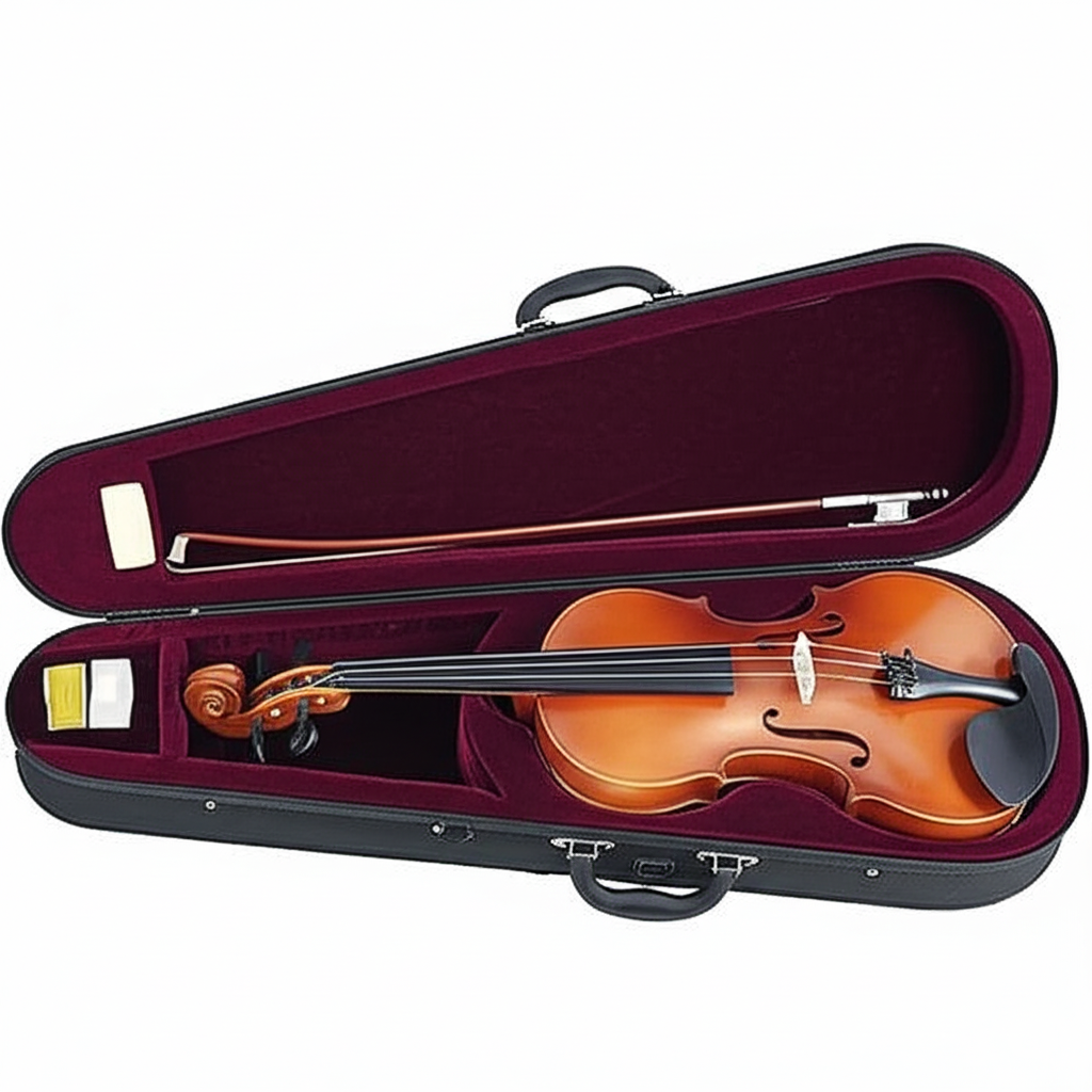 MegArya Indian Maple Wood Handmade Violin. This full-size 4/4 acoustic violin is expertly handcrafted from high-quality Indian maple wood, offering warm tones and excellent resonance. Finished in a rich mahogany polish, it features a timeless, elegant look that stands out in any setting. Ideal for beginners and young learners, this violin is designed to be comfortable, easy to tune, and ready to play right out of the box. The complete set includes a well-balanced bow, quality rosin, and a durable black hard case with a plush maroon interior for added protection and style. Whether you're starting your musical journey or gifting it to a budding musician, the MegArya Mahogany Violin Set is a reliable and beautiful choice for learning and performing.