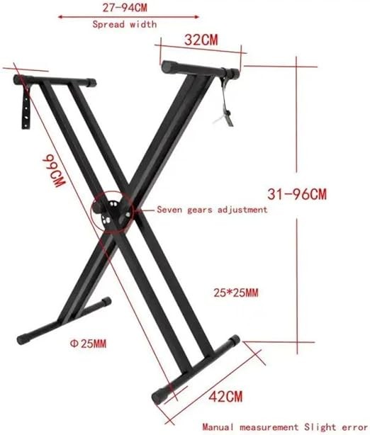 [DURABLE]: This bracket adopts thick iron tube, which is large in volume and good in lifting performance. The welding process is tight and the smooth painting process can be more stable and play with peace of mind. ▶ [SLIP-PROOF]: The stand provides a firm and stable grip for all keyboards, even for long periods of use. Thanks to the non-slip rubber fixings, the piano can stay in place. This also prevents scratches on the stand and the instrument. ▶ [ADJUSTABLE]: The adjustment range and support length can be adjusted according to your needs to suit your instrument and its size to suit the playing environment. You can play in a comfortable position. ▶ [LOAD-BEARING FORCE]: Due to the materials used and high-quality technology, the keyboard stand made of metal has extremely high resistance. The maximum load is 30kg. This can prolong the service life. ▶ [FOLDABLE]: The stand is lightweight and foldable for easy carrying and storage. Easy to use for performances and music exams.